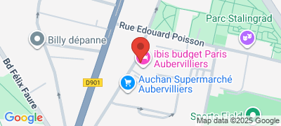 El hotel IBIS Budget Porte d'Aubervilliers, cerca de París, ofrece 257 habitaciones con aire acondicionado, incluidas 7 para PMR, con 2 salas de seminarios equipadas. El hotel IBIS Budget de Aubervilliers se encuentra a 2 km del Stade de France y del Parc de la Villette. El hotel está situado en Aubervilliers, cerca de las principales carreteras y del metro de París (estación de metro: Aubervilliers-Quatre-Chemins, línea 7), que está a unos 500 metros y le lleva al corazón de París.